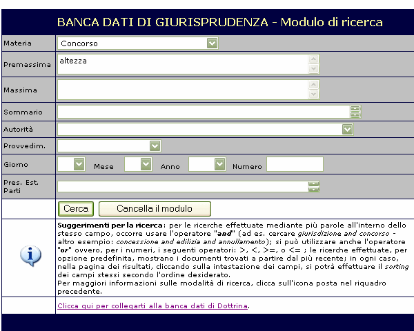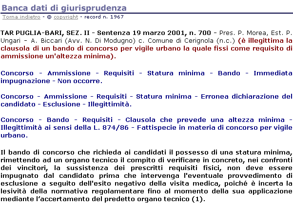 Immaginiamo, ad esempio, di dovere eseguire una ricerca riguardante tutte le pronunce concernenti il requisito dell'altezza nei concorsi pubblici.